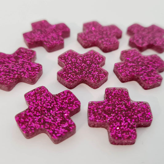 20mm HOT PINK GLITTER Acrylic CROSSES