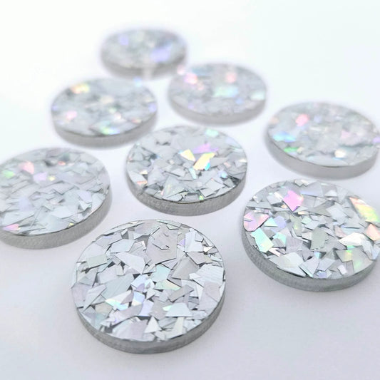 20mm HOLOGRAPHIC SILVER GLITTER Acrylic CIRCLES.