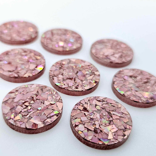 20mm HOLOGRAPHIC ROSE GOLD GLITTER Acrylic CIRCLES