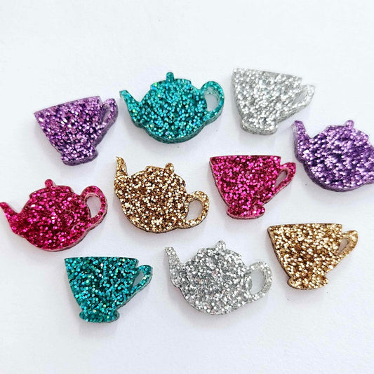 20mm GLITTER Acrylic TEAPOT & TEACUP MIXED PACK