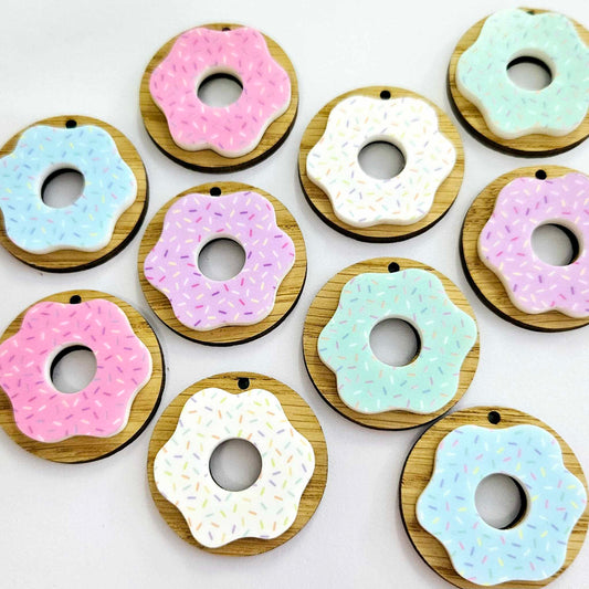 35mm OAK & PINK SPRINKLE Acrylic DONUTS