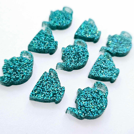 20mm TEAL GLITTER Acrylic TEAPOT & TEACUP