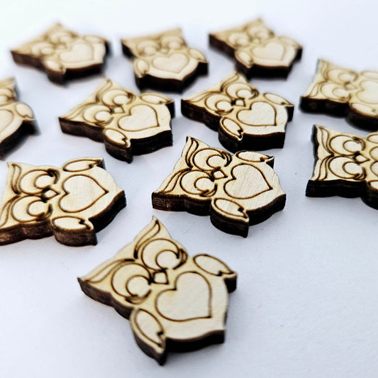 14mm OAK VENEER HEART Toppers/Studs